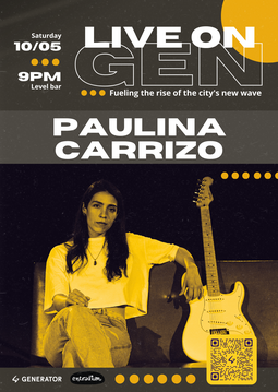 El próximo sábado 10 de mayo, la artista argentina Paulina Carrizo llega a Generator Madrid para compartir su universo sonoro: un viaje de emociones profundas, raíces poéticas y melodías que abrazan.